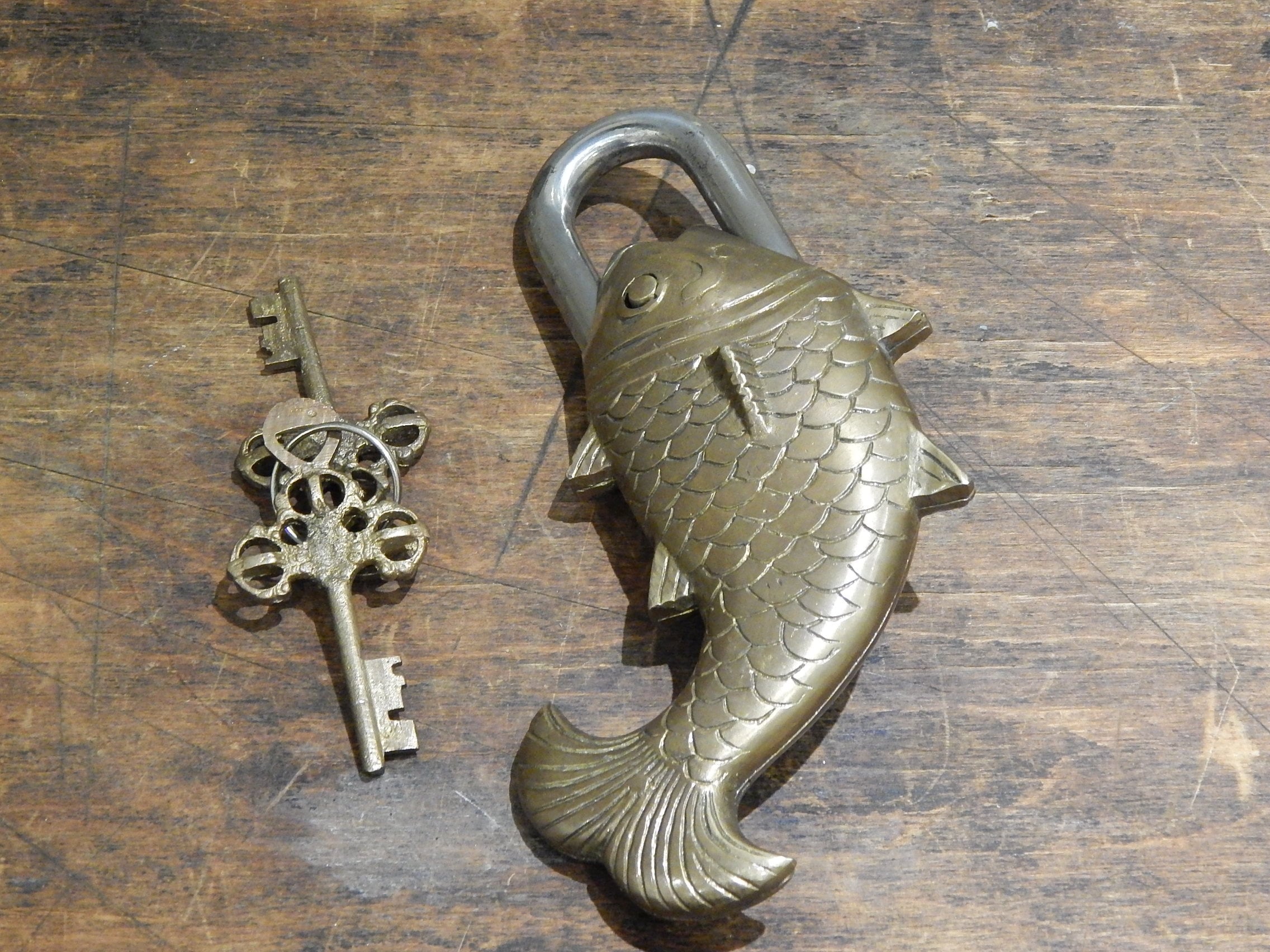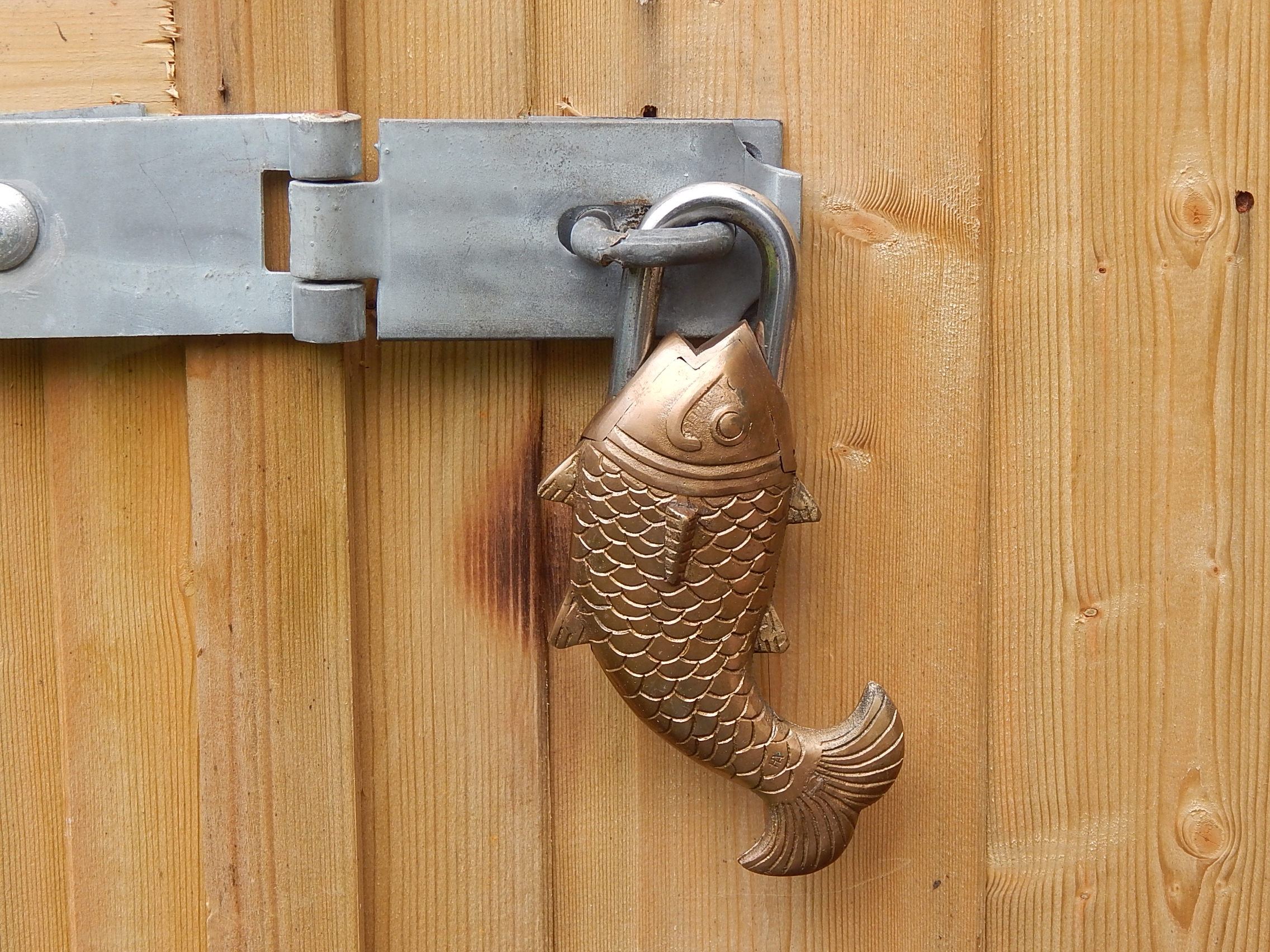 Made from solid cast brass and very sturdy. Suitable for outside use, with a protective wax finish added. Ideal to use on garden sheds, gates and anything you wish to secure. Can be also used in the home or as a decorative item particularly hung on large wooden frames or mantle pieces.